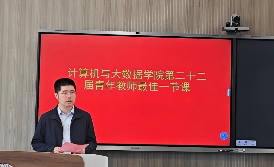 为进一步激发学院青年教师更新教学理念、掌握现代教学方法的热情,帮助他们提高教育教学水平,站稳讲台,充分发挥教学竞赛在提高青年教师队伍素质中的引领示范作用,4月2日,计算机与大数据学院(软件学院)在旗山校区公共教学楼中405智慧教室举行2026年学院青年教师“最佳一节课”教学竞赛。此次青年教师最佳一节课比赛是学院首次尝试将新教师教学考核纳入比赛范畴,给新进教师多一个学习机会,从而提升他们教学水平。本次活动得到学院各教学单位的积极响应,共推选了11位青年教师参加比赛。陈星院长、刘耿耿副院长、叶福玲工会主席亲临比赛现场观摩指导。比赛邀请了校本科教学督导组洪婷婷、刘毓氚、曾勋勋担任评委组,以及学院教学经验较为丰富的几位教师担任评委。